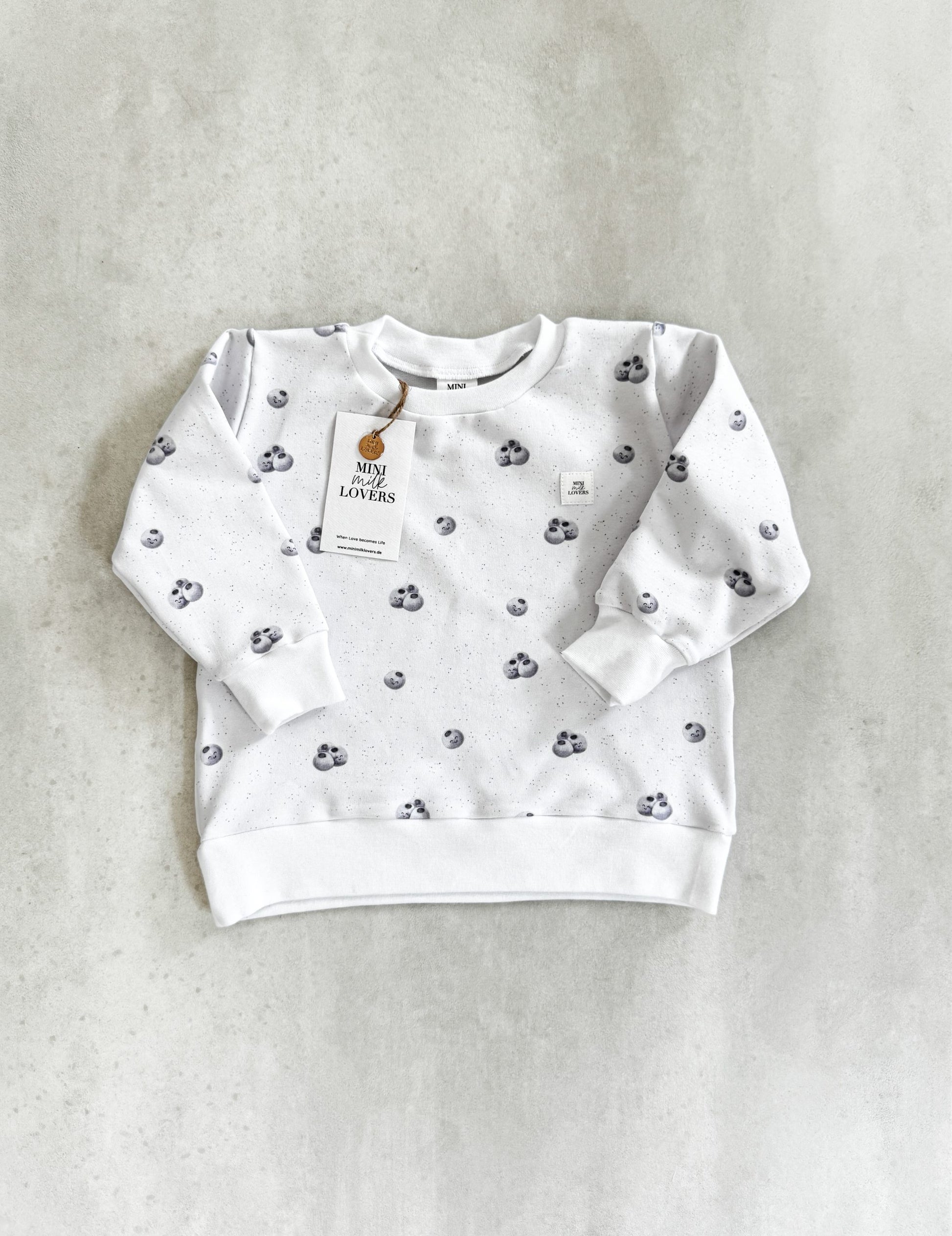 Bluebeery Sweatshirt, liebevoll handgefertigt in Deutschland. Dieser süße und bequeme Sweater kratzt nicht, ist atmungsaktiv und wurde mit hochwertiger ÖkoTex Baumwolle gefertigt. Perfekt für den täglichen Gebrauch. Der Sweater kann leicht mit anderen Kleidungsstücken kombiniert werden. Auch perfekt zum verschenken für Baby Showers, Weihnachten, Taufe und Geburtstage.