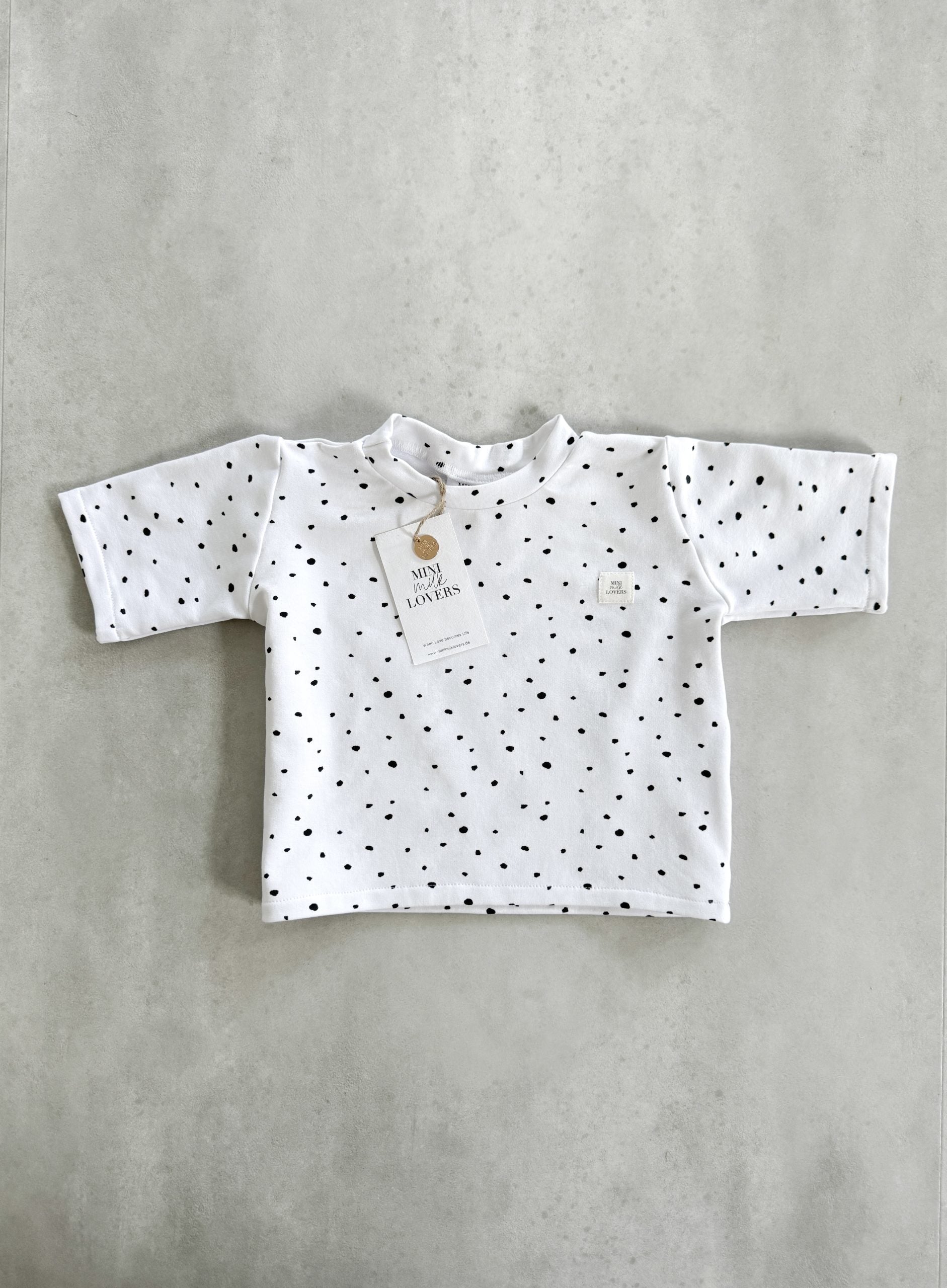 Dieses süße Dots T-Shirt ist zeitlos, elegant und super kombinierbar mit anderen Kleidungsstücken. Hergestellt in liebevoller Handarbeit in Deutschland. Durch seine perfekt sitzende und nicht zu enge Passform, ist es ein absolutes Must Have für die kommende Saison. Perfekt für den Alltag oder aber auch schick kombinierbar für besondere Anlässe wie Geburtstag oder Babyparty. Wunderschöne Geschenkidee zur Geburt, Schwangerschaft oder Babyparty.