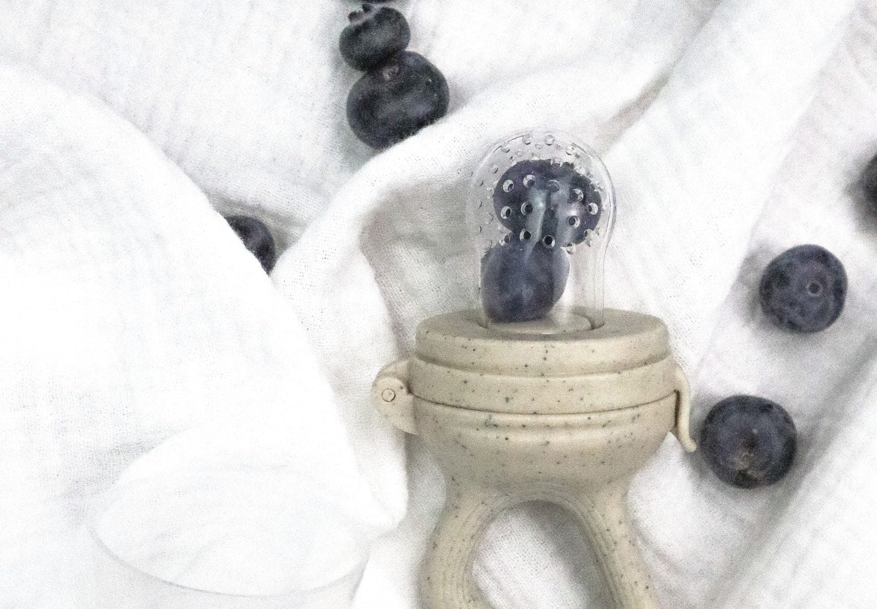 Der Fruchtsauger überzeugt nicht mit seinem Namen, sondern mit seiner Vielseitigkeit! Schon im jungen Alter kann Dein Liebling mit dem Sauger lernen wie es ist, selbstständig zu essen. Der weiche Schnuller kann zum Beispiel mit Muttermilch, Saft oder einem Smoothie befüllt werden. Hervorragend eignet sich auch Obst und Gemüse. Durch die kleinen Löcher gelangt die Füllung in kleinen Mengen in den Mund und verhindert die Gefahr des Verschluckens.