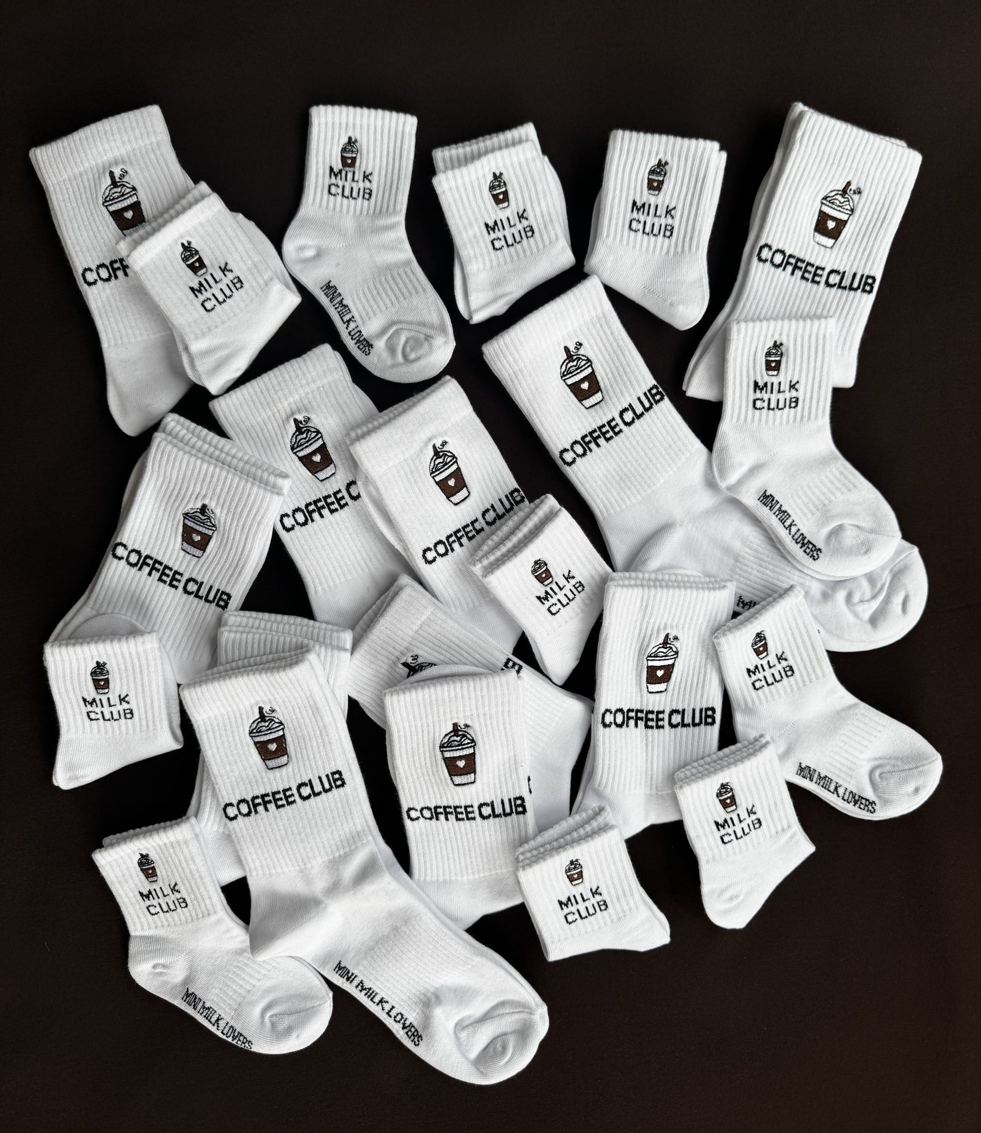 Unsere stylischen und super bequemen Milk Club Socken, sind ein absolutes Must Have für alle die Partner Looks lieben. Sei sind perfekt für alle kleinen Milchliebhaber.