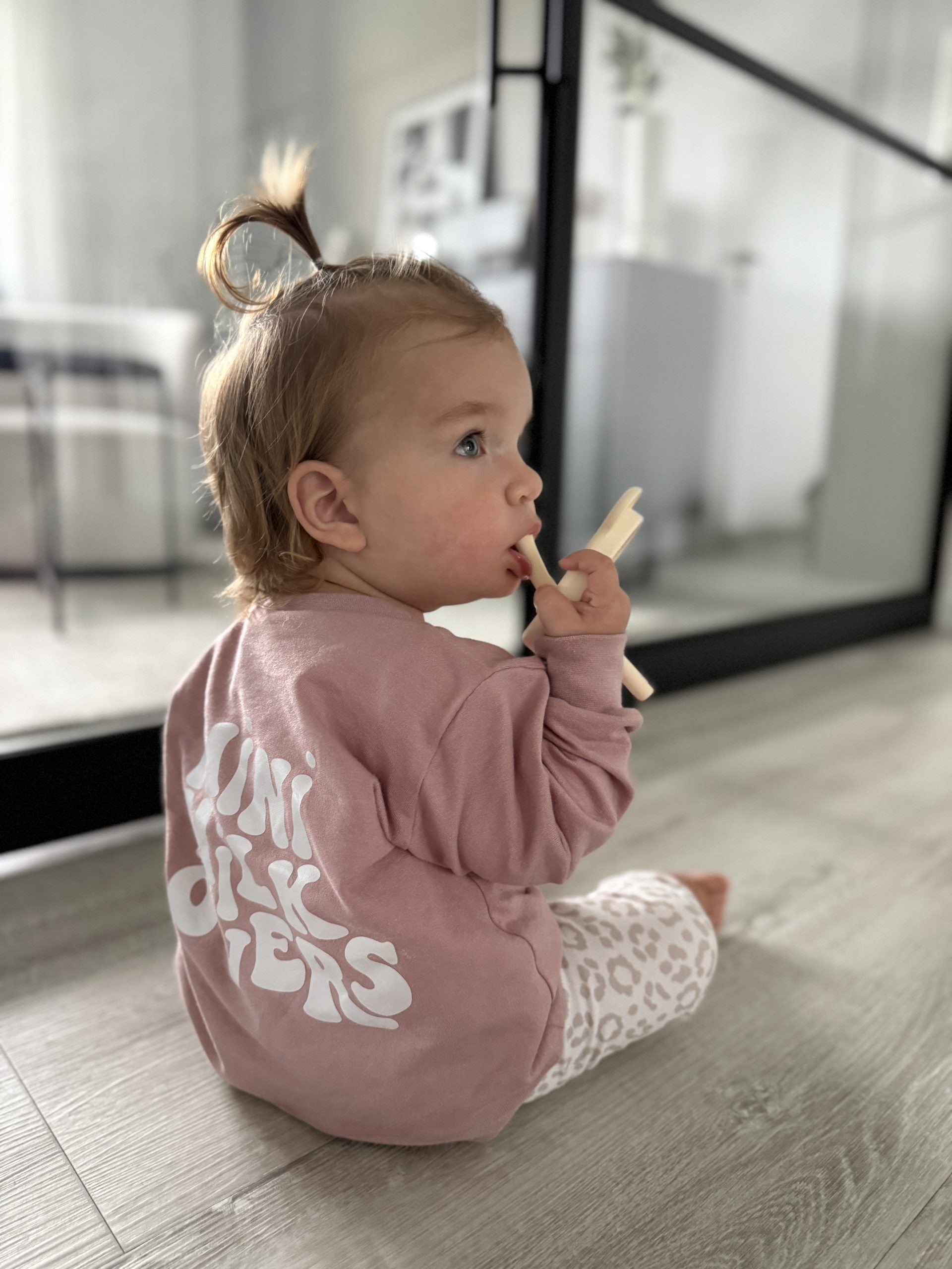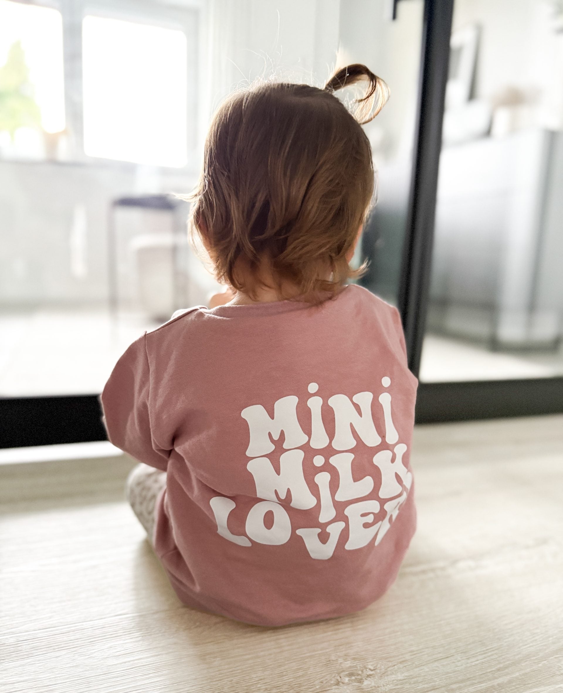 Retro Mini Milk Lovers Sweatshirt in Berry. Liebevoll handgefertigt in Deutschland. Dieser süße und bequeme Sweater hält schön warm, ist super kuschelig, kratzt nicht, ist atmungsaktiv und wurde mit hochwertiger ÖkoTex Baumwolle gefertigt. Perfekt für den täglichen Gebrauch. Der Sweater kann leicht mit anderen Kleidungsstücken kombiniert werden. Ein super schönes Geschenk für Baby Showers, Weihnachten, Taufe und Geburtstage.