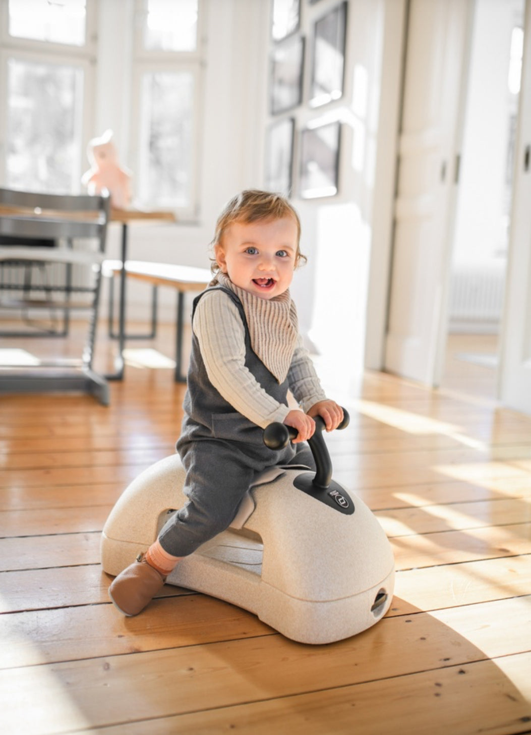 Dank der abnehmbaren und wendbaren unteren Platte passt sich der Baby-Rutscher den Bedürfnissen deines Kindes optimal an. Die - auf der Unterseite angebrachten - Gliding Pads bieten Stabilität für die ersten Steh- und Gehversuche, während die leisen Rollen auf der anderen Seite der Platte grenzenlosen indoor Fahrspaß bieten.